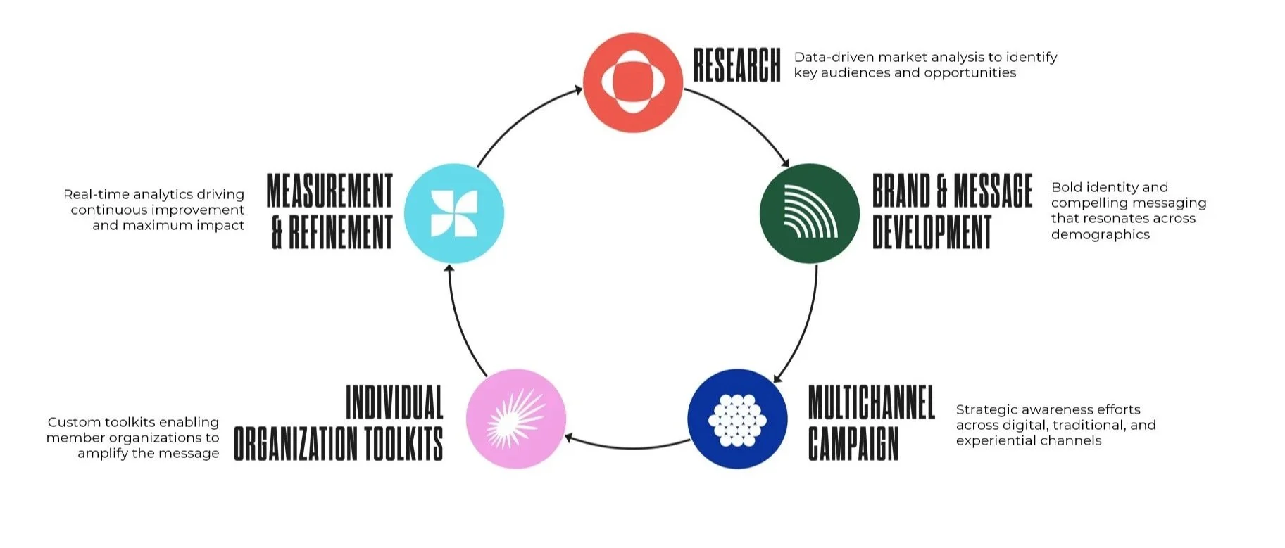 Develop a unified brand platform and message to be adapted across audiences and member organizations.